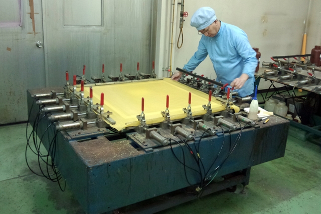 シルク印刷、孔埋め印刷を行うためのスクリーン版を作製します。
